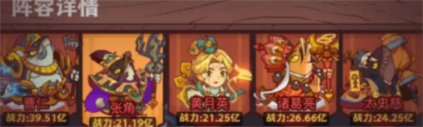 策略:这个阵容的核心在于张角的输出和太史慈的增伤,而诸葛亮和黄月英则提供高效的支援,保证输出的同时不至于轻易崩盘。