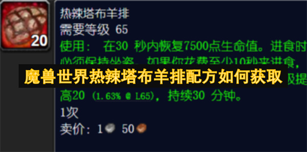 热辣塔布羊排是《魔兽世界》燃烧的远征(TBC)版本中的热门烹饪食谱,可提供20点命中与精神,是盗贼、猎人等缺命中的物理职业必备食品。本攻略将详细介绍该食谱的获取方式,助你轻松获得这道强力料理。